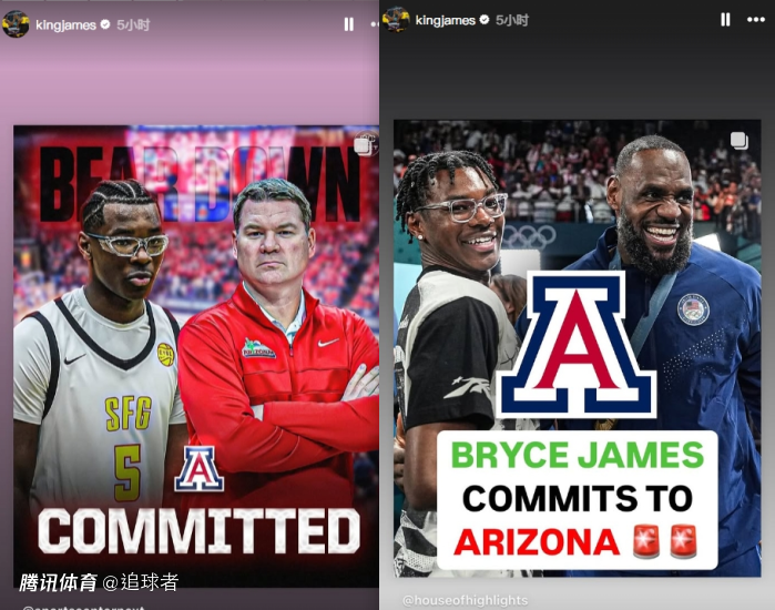 2025-01-02 11:00北京时间1月2日,詹姆斯家迎来一大喜讯,小儿子布莱斯正式加盟亚利桑那大学,老詹不仅为儿子感到骄傲,而且连续更新多条动态庆祝此事。