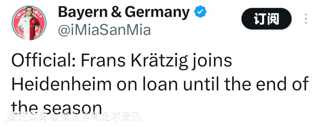 拜仁官方:克雷齐希租借加盟海登海姆 租期六个月