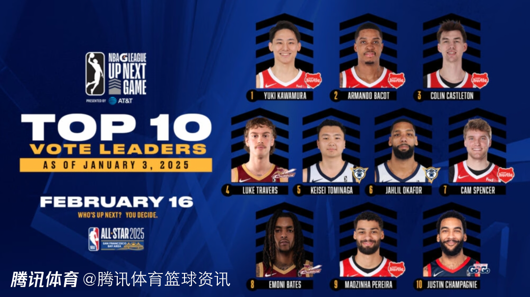 2025-01-04 10:10北京时间1月4日,G联赛官方公布第一阶段NBA全明星周末Up Next Games球迷投票结果,日本球员河村勇辉暂时成为票王,另外一名日本球员富永启生排名第五,河村勇辉所在的孟菲斯拼搏队有五人进入前十,不过前十中未有布朗尼的身影。