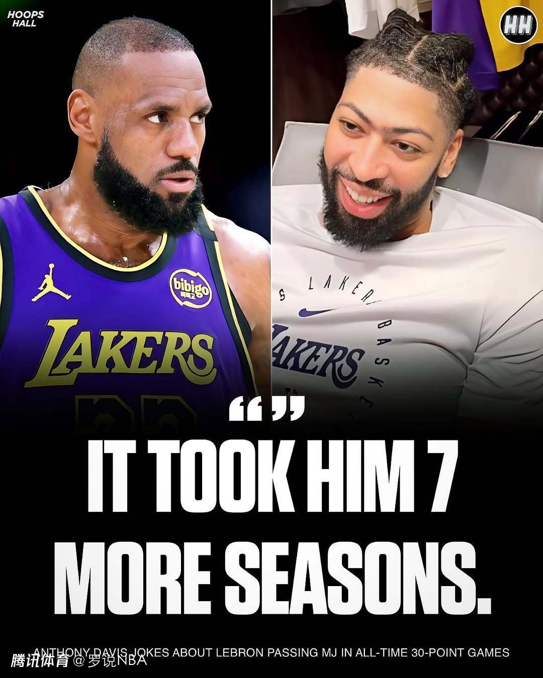 有趣的是记者采访浓眉时,提到作为一名来自芝加哥的孩子,看到詹姆斯的数据超越乔丹有何感受,浓眉调侃起这位老搭档:“这让我很困扰,但是呢,他多用了7个赛季!”这番幽默,也让现场记者哈哈大笑,浓眉随后表示这是一项卓越的成就,并感觉詹姆斯在这个阶段很多数据都是第一了。