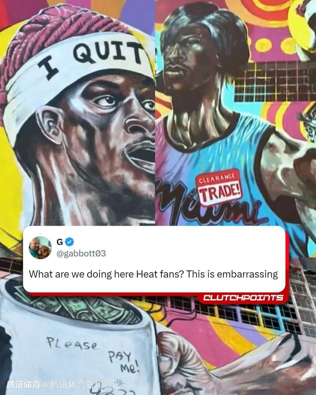 2025-01-06 06:50北京时间1月6日,据迈阿密当地媒体报道,巴特勒的一幅壁画遭到涂抹破坏。有球迷在巴特勒的发带上写了“我不干了”,在巴特勒的杯子上写着“付钱给我”,还在巴特勒的球衣上喷涂了“清仓交易“的字样。有美媒评价道:“巴特勒值得更好的待遇”,还有人吐槽“做这些事的热火球迷太丢人了”。此前,这位球星曾两次率领不被看好的热火打进总决赛。