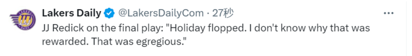 雷迪克:浓眉被吹掩护犯规老詹三分没算令人震惊 霍乐迪假摔了