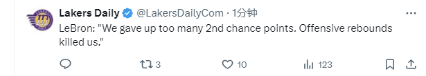 在谈到湖人最后时刻被断球时,詹姆斯说道:“我当时就觉得事情不对劲,所以我绝对喊了暂停,但裁判却说他当时正盯着球在看,这种事情有时候就会发生。”不过詹姆斯随后强调,这并非是湖人队输掉比赛的原因。詹姆斯赞同雷迪克的看法,认为湖人队主要输在了篮板球的保护上,被对手拿到太多二次进攻得分。“我们给了对手太多的二次进攻得分机会,他们靠进攻篮板杀死了我们。”詹姆斯说道。此役,火箭队抢到18个进攻篮板球。
