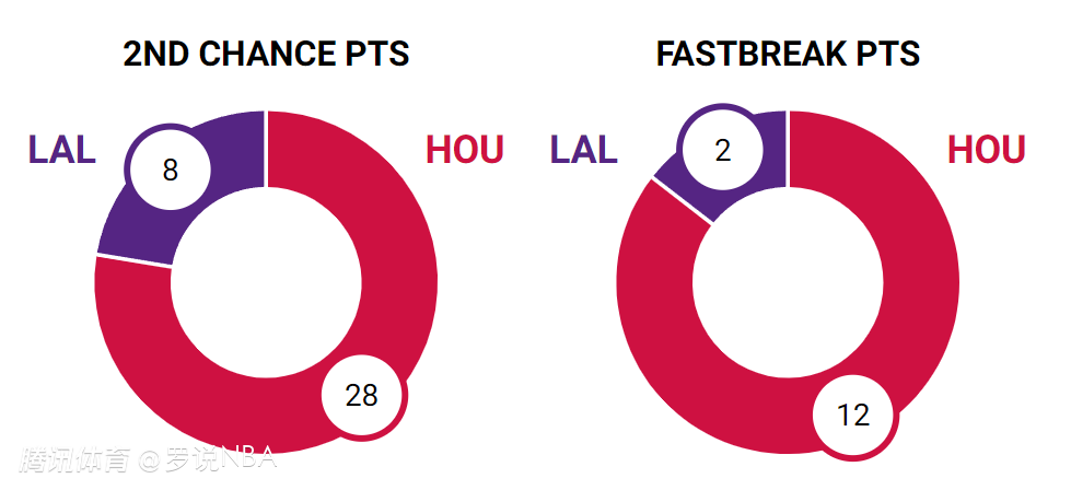 湖人本场比赛只抢到39个篮板,而火箭抢到49个篮板。差距主要体现在前场篮板上,湖人只有10个前场篮板,火箭抢到18个前场篮板,火箭通过二次进攻得到28分,湖人只有8分,另外火箭快攻得到12分,湖人只有2分。