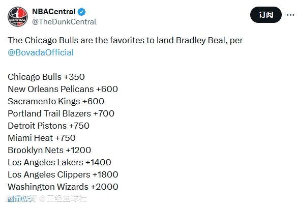 2025-01-07 07:00北京时间1月7日,NBA常规赛继续进行。在今天早些时候,美国媒体更新了太阳队球星比尔的下家赔率排名,公牛队力压鹈鹕队、国王队等球队居首,湖人队、快船队上榜,重返奇才队也在选项之中。