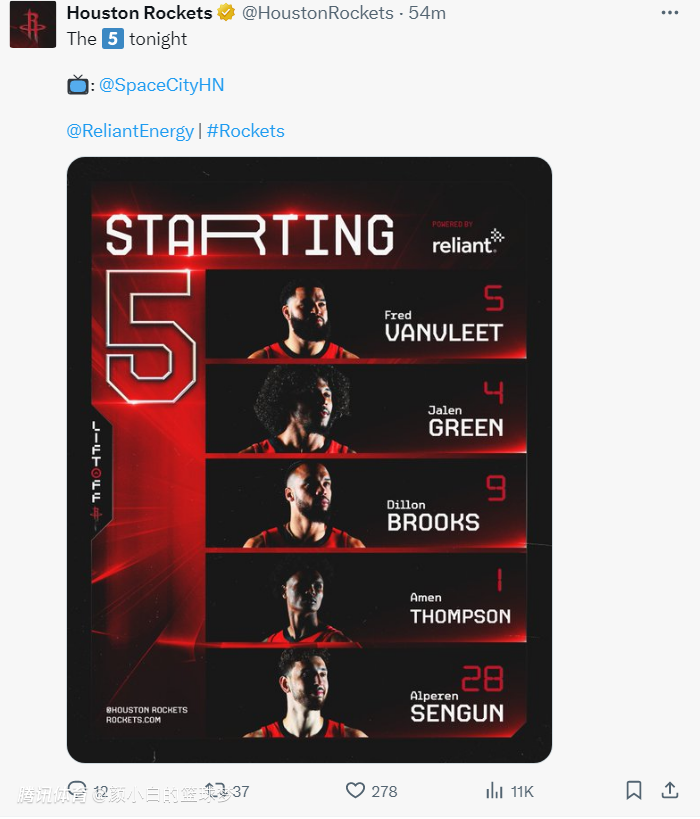 火箭:格林29分8篮板2助攻1抢断7记三分,申京26分10篮板6助攻1抢断,范弗利特19分11助攻,阿门14分14篮板5助攻3抢断0失误,白魔17分1篮板1抢断。