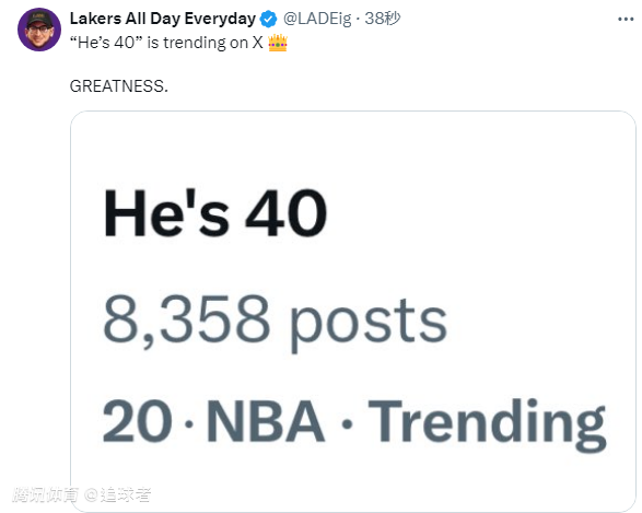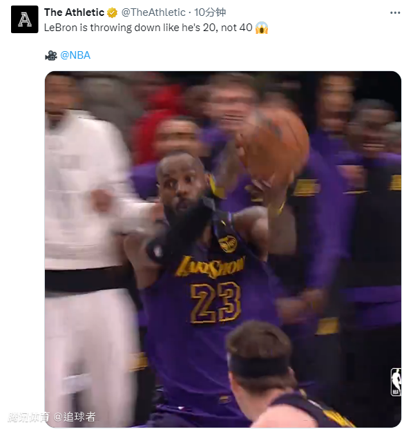 40岁詹姆斯被打脸仍不讲理隔扣莱夫利,众美媒刷屏转发,全美热议他40岁了,湖人记者调侃:更搞笑的是这球竟不是2+1。