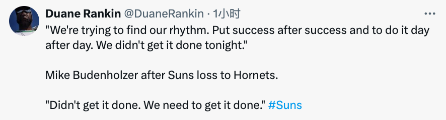 2025-01-08 12:20北京时间1月8日,NBA常规赛,太阳客场以104-115不敌黄蜂,帮助对手终结了10连败,赛后太阳主帅布登霍尔泽接受了媒体的采访。