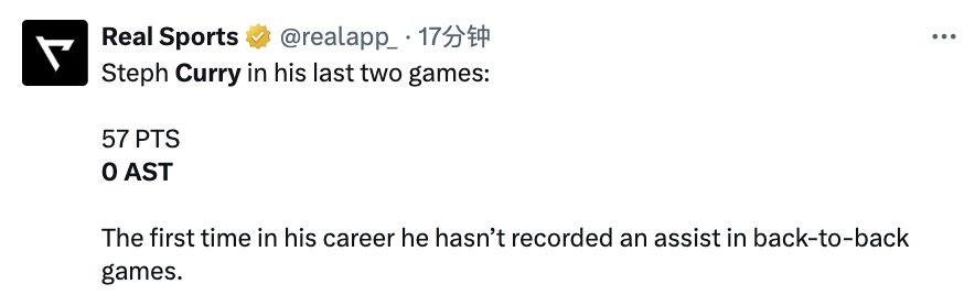 库里连续两战0助攻生涯首次 不算本赛季最近一次出现在2018年