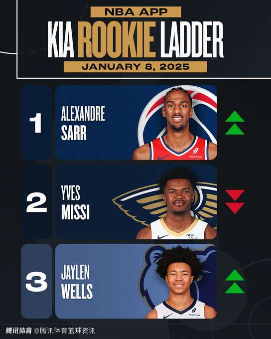 2025-01-09 07:00北京时间1月9日,NBA官方发布了最新一期的新秀榜,奇才队的萨尔居首,他也是本赛季第6位领跑新秀榜的球员。鹈鹕新秀米西和灰熊队的杰伦-威尔斯分列2、3位,具体情况如下: