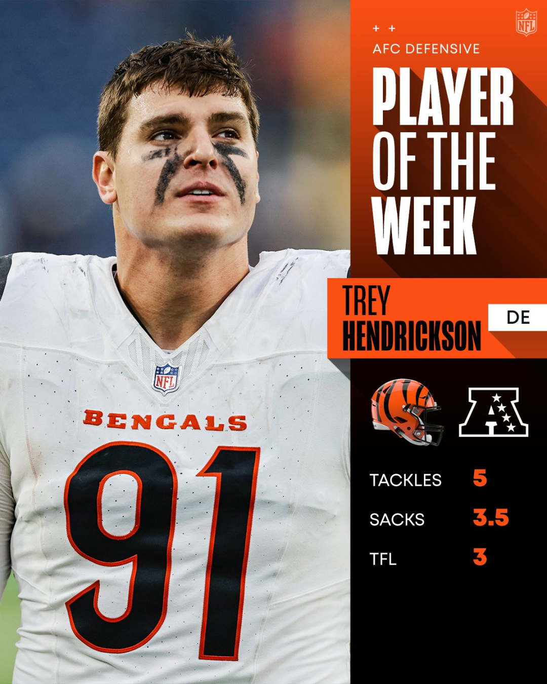 在最后一周面对钢人的关键战中,亨德里克森在最后时刻接连完成两记擒杀,帮助猛虎赢得了险胜,他自己也凭借本场3.5次擒杀将赛季擒杀次数累计到17.5次领跑全联盟,但这依然不能够帮助球队晋级季后赛。