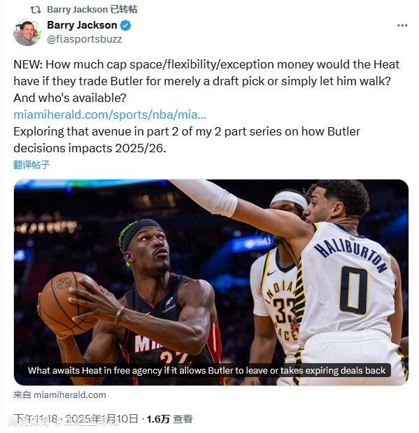 在今天早些时候,《迈阿密先驱报》记者Barry Jackson和Anthony Chiang联合报到了巴特勒事件的最新进展。热火队在最近一段时间内还没有收到让他们满意的交易报价,他们计划让巴特勒在下周六与掘金队的比赛里回归球队。据消息人士透露,只有热火队在下周得到一份满意的报价,当前的情况才会发生改变。