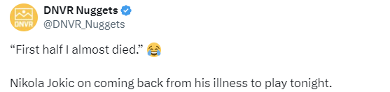 约基奇:上半场带病作战感觉要死了 很高兴能和威少同砍三双并赢球