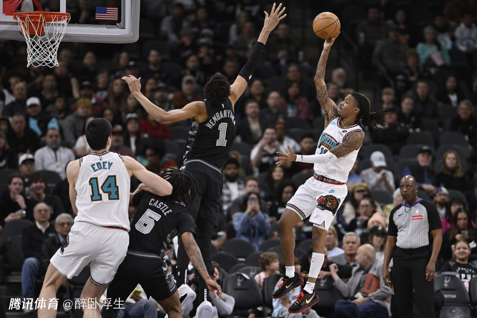 灰熊逆转马刺巩固西部第三 莫兰特21+12文班13+12+8帽