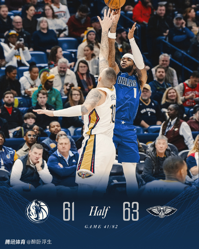 独行侠前40场22胜18负,过去两场连续两次输掘金遭遇2连败。鹈鹕前41场9胜32负,上一场119-113险胜公牛。本赛季首次交锋,独行侠主场132-91大胜鹈鹕。本场独行侠缺少东契奇、欧文与埃克萨姆,鹈鹕缺少锡安、英格拉姆与赫伯特-琼斯。双方均是有两位核心球员缺席比赛,首节比赛独行侠遭鹈鹕压制处于落后局面,克莱单节没有投篮出手,华盛顿与哈迪均是单节得到9分。独行侠首节19中9,鹈鹕26中13表现更出色,尤其是外线三分命中数鹈鹕5-2净胜3记三分,首节结束独行侠27-33落后鹈鹕。
