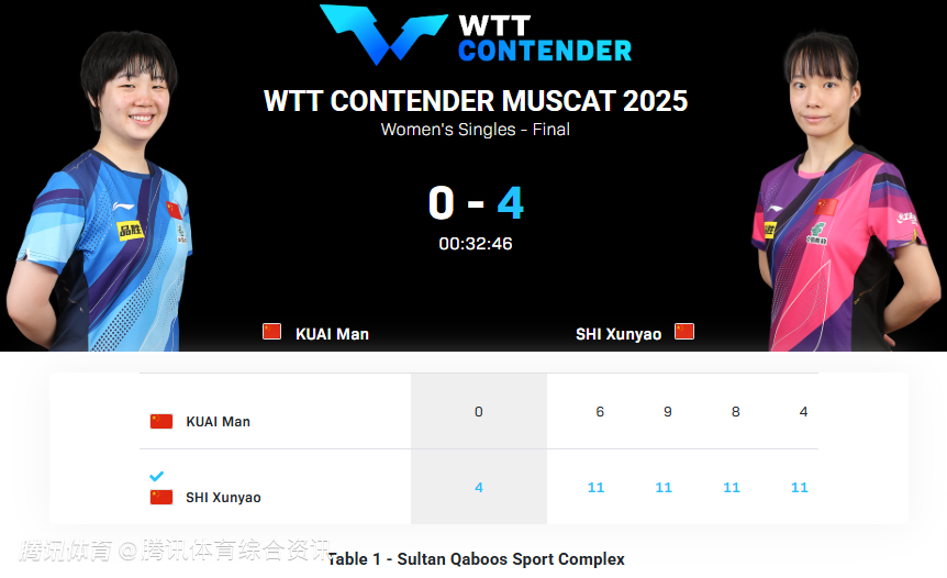 WTT常规挑战赛马斯喀特站女单决赛:石洵瑶4-0战胜蒯曼 获得冠军