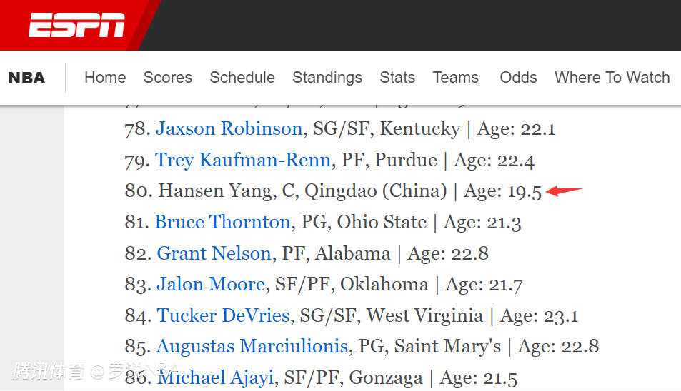ESPN选秀榜更新:杨瀚森从第90升至第80 弗拉格仍稳居榜首