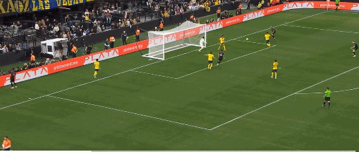 比赛的第33分钟,阿尔巴横传,后卫头球解围失误,苏亚雷斯后点横传,无人盯防的梅西头球冲顶破门,为迈阿密国际扳平比分。