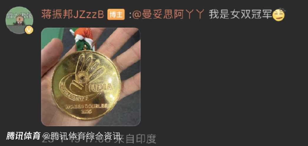 获印度公开赛混双冠军 蒋振邦收到女双金牌:我是女双冠军