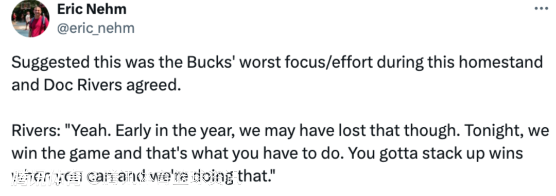 2025-01-20 12:40北京时间1月20日,NBA常规赛,雄鹿坐镇主场以123-109力克76人,取得四连胜,赛后雄鹿主帅里弗斯接受了媒体的采访。