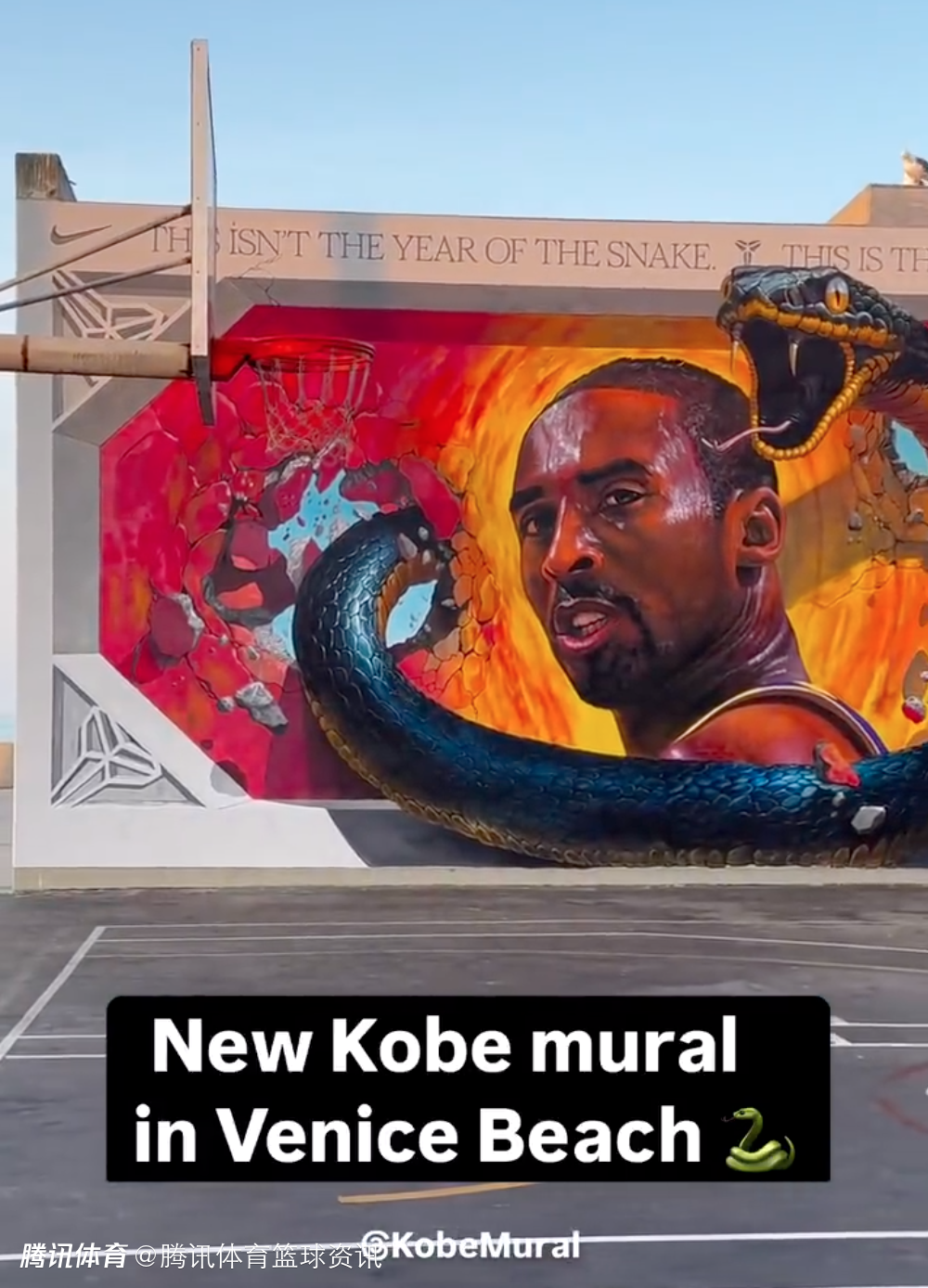 洛杉矶威尼斯海滩新建科比壁画:以曼巴年为灵感 大红色调为主