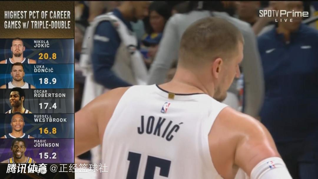 同时,这也是约基奇生涯第149次三双,继续排名NBA历史第3位,仅次于他的队友威斯布鲁克以及名宿大O罗伯特森。需要说明的是,约基奇生涯比赛三双比例来到20.8%,高居NBA历史第一!
