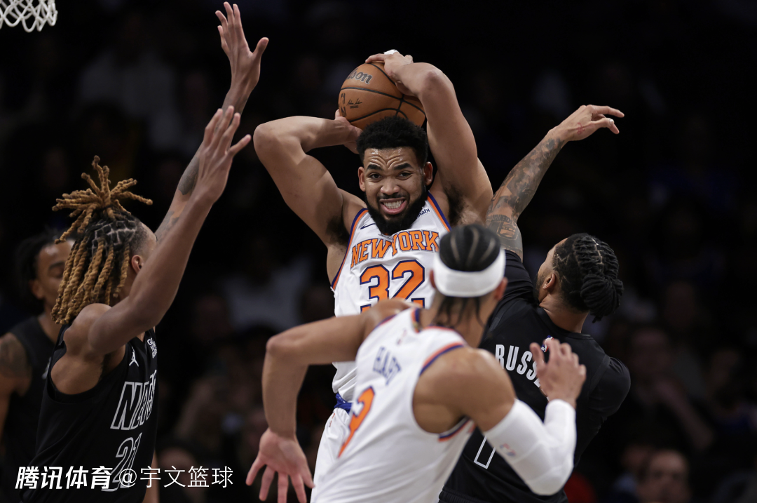 尼克斯5人上双,唐斯25分16篮板6助攻3抢断,阿奴诺比20分4篮板3抢断,布伦森17分4助攻,布里奇斯10分,阿丘瓦11分4篮板