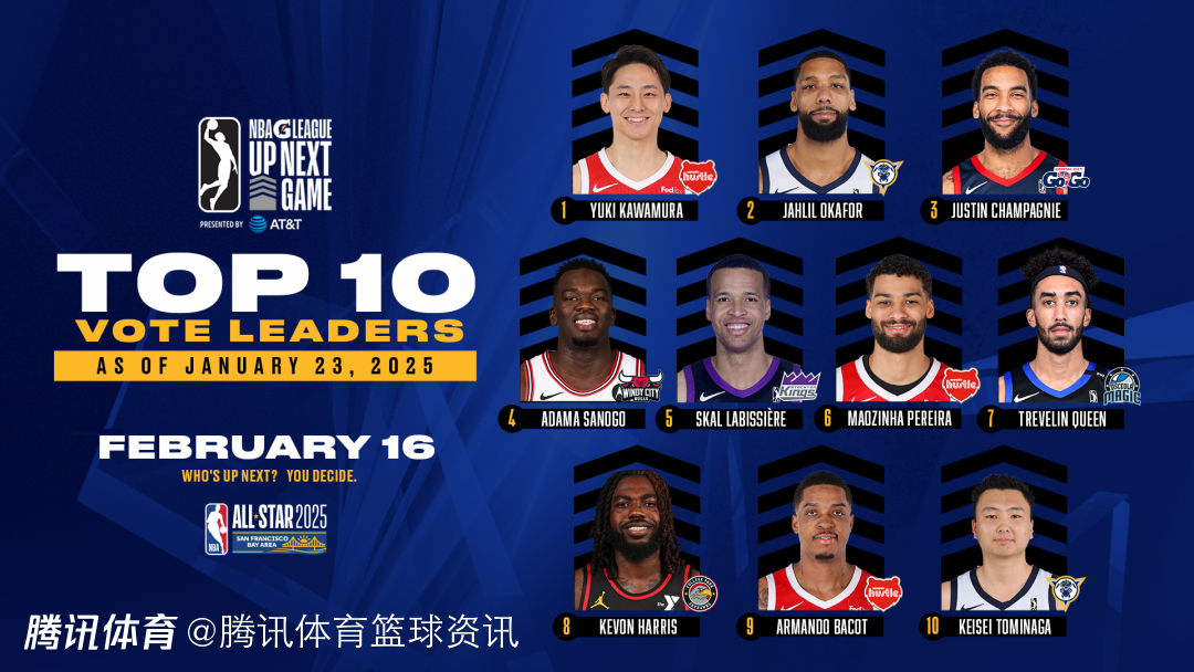 2025-01-24 08:40北京时间1月24日,G联赛官方公布了最后一次NBA全明星周末Up Next Game粉丝投票结果,日本球员河村勇辉重回票王宝座,CBA旧将奥卡福则排在第二位。具体情况如下: