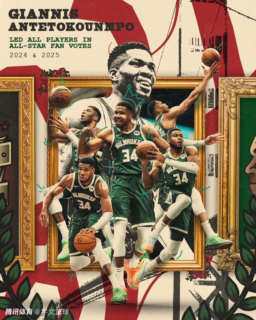字母哥在全明星球迷投票中获得了4435266票,是唯一一名突破400万大关球员,以碾压式姿态当选票王。字母哥连续第二年当选全明星票王,他也是历史上第11位多次当选全明星票王的球星,现役自詹姆斯第二人。
