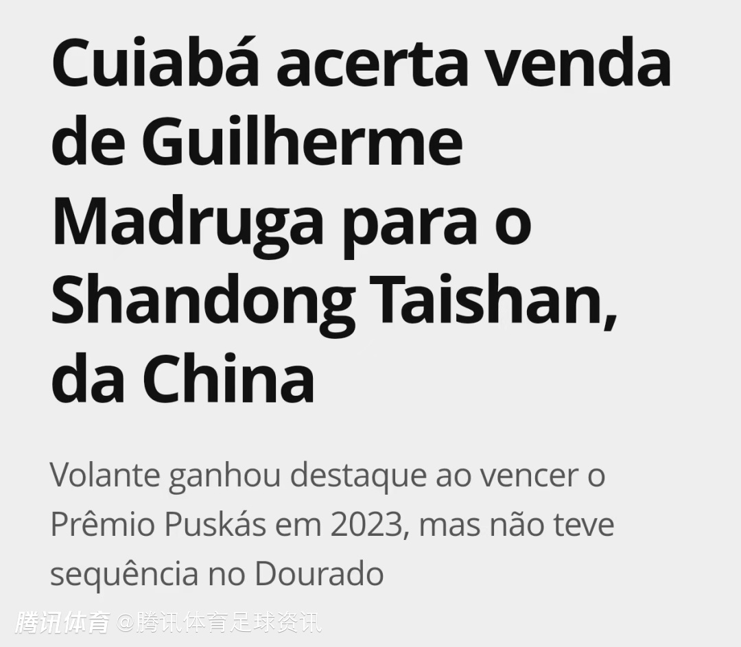 2025-01-25 18:00北京时间1月25日,根据巴西媒体环球体育的报道,山东泰山将以80万美元的价格签下中场球员马德鲁加,双方将签订一份“2+2”模式的合同。
