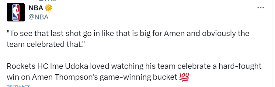 乌多卡表示,球队在最后时刻的计划就是把球交给阿门-汤普森,让他来完成最后一投。他非常开心见到球队在一场艰难的比赛后欢庆胜利,他说道:“我们都看到了阿门-汤普森的最后一投命中,这对他个人来说意义非凡,球队也为此欢庆不已。”