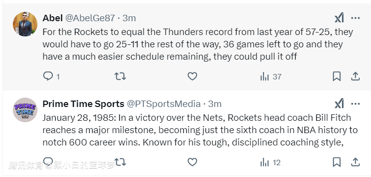 美球迷:对于火箭来说,要追平上赛季雷霆57胜25负,他们余下的36场比赛需要拿到25胜11负,但他们余下的赛程相对轻松,我认为他们有希望拿到57胜。