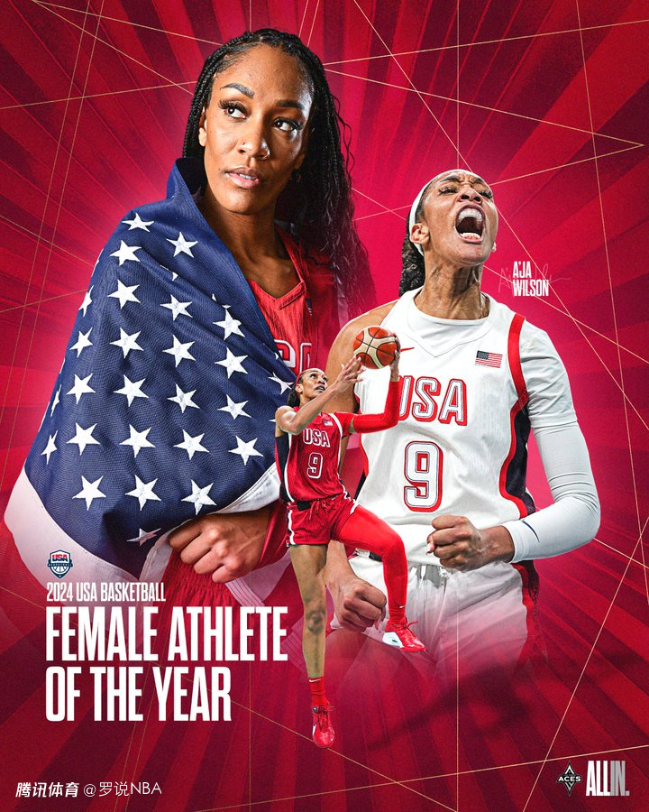 另外,阿贾-威尔逊当选为2024年美国5人制篮球年度最佳女运动员。她在奥运期间场均18.7分10.2篮板2.7盖帽1.5抢断,四项数据均排名全队第一。