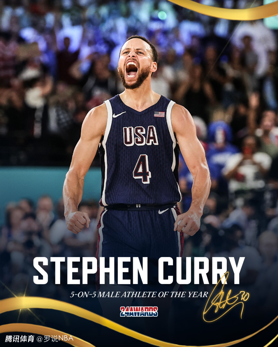 在此前的入围名单上,除了库里,还有詹姆斯、杜兰特、米卡尔-布朗和AJ-迪班萨。库里成功力压詹杜获得这项大奖。勇士官方也晒出照片,配文写道:“2024年美国5人制篮球的年度最佳男运动员非库里莫属!”