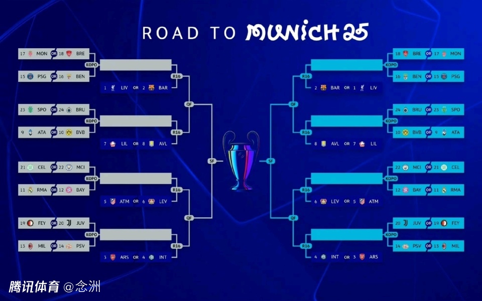 第11名皇马、第12名拜仁将在附加赛面对第21名凯尔特人或第22名曼城,两场比赛的胜者将在1/8决赛面对第5名马竞或第6名勒沃库森。