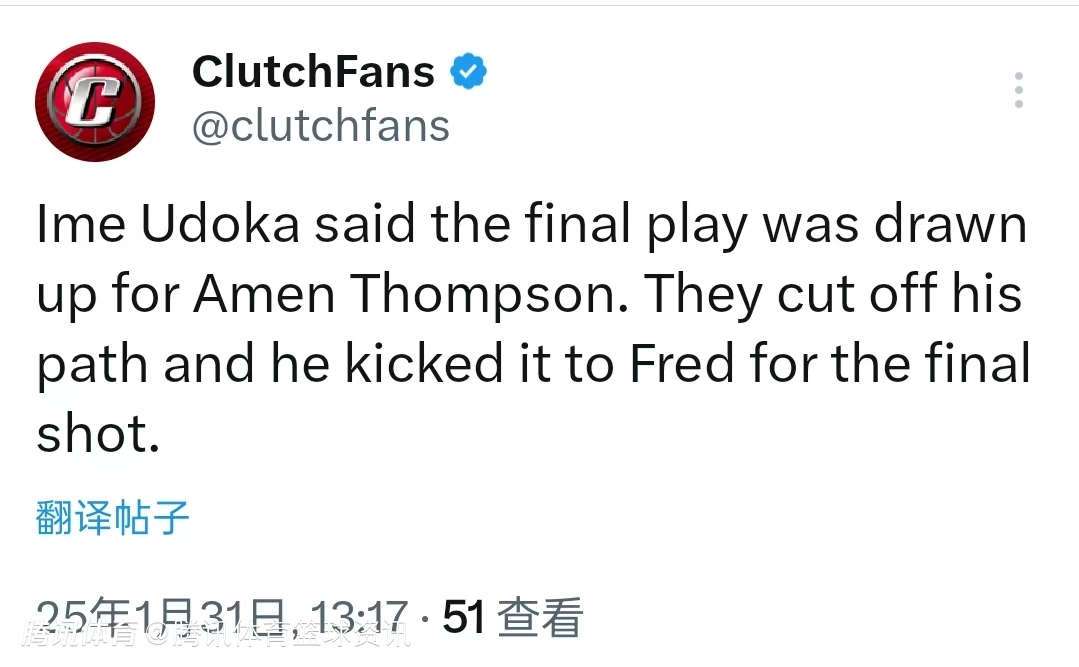 在本场比赛最后时刻,范弗利特未能命中绝杀球,火箭憾负对手。乌度卡对火箭的最后一攻进行说明,他表示:“我们原本安排的最后一攻是为阿门-汤普森设计的,但对手阻挡住了他的前进路线,所以他将球交给范弗利特进行最后一投。”