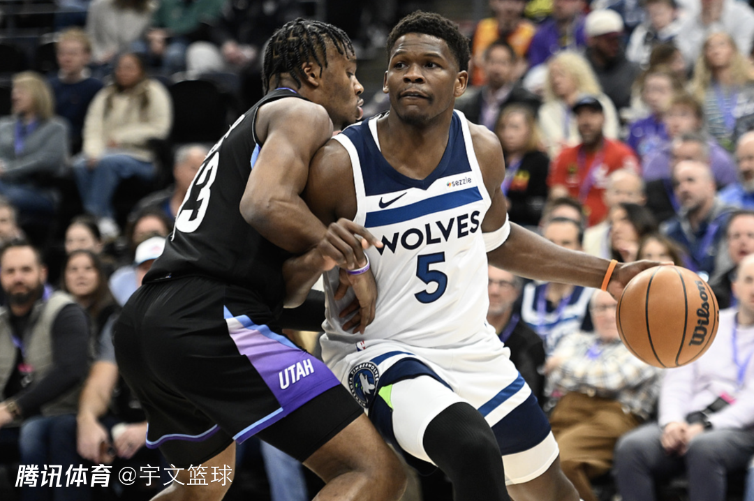森林狼客场背靠背挑战爵士,球队首节稍显慢热,被爵士打出25-10的开局先发制人。不过森林狼迅速调整状态,通过爱德华兹的犀利进攻表现,在半场比赛结束前完成比分反超。第三节比赛爱德华兹带领球队轰出单节44分高分,进一步扩大领先优势,末节比赛森林狼最多领先爵士29分,比赛提前进入垃圾时间。最终森林狼大胜爵士豪取5连胜,胜场逐渐逼近西部前六,爵士遭遇8连败在西部持续垫底。
