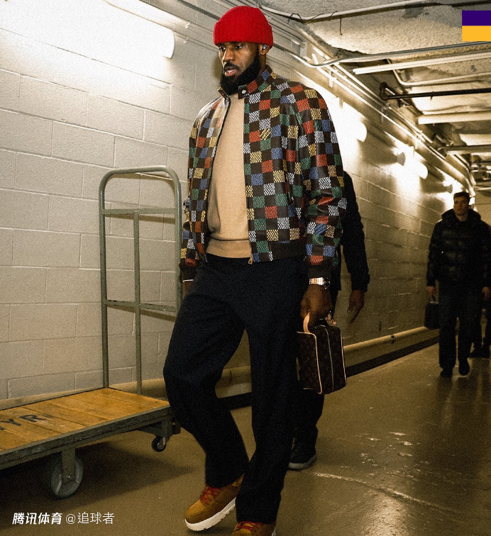 赛前,詹姆斯身穿牛仔裤和休闲外套,戴着红色针织帽走出酒店,布朗尼身穿羽绒服,在球迷的呐喊声中,老詹父子登上球队大巴前往麦迪逊广场花园。
