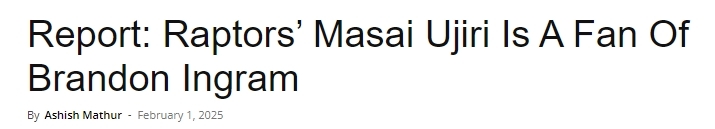 2025-02-02 09:10北京时间2月2日,根据NBA记者Marc Stein报道,猛龙队有意交易英格拉姆,因为球队总裁乌杰里是英格拉姆的粉丝。