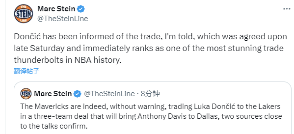 东契奇已得知自己被送往湖人 三方交易在当地时间周六晚完成