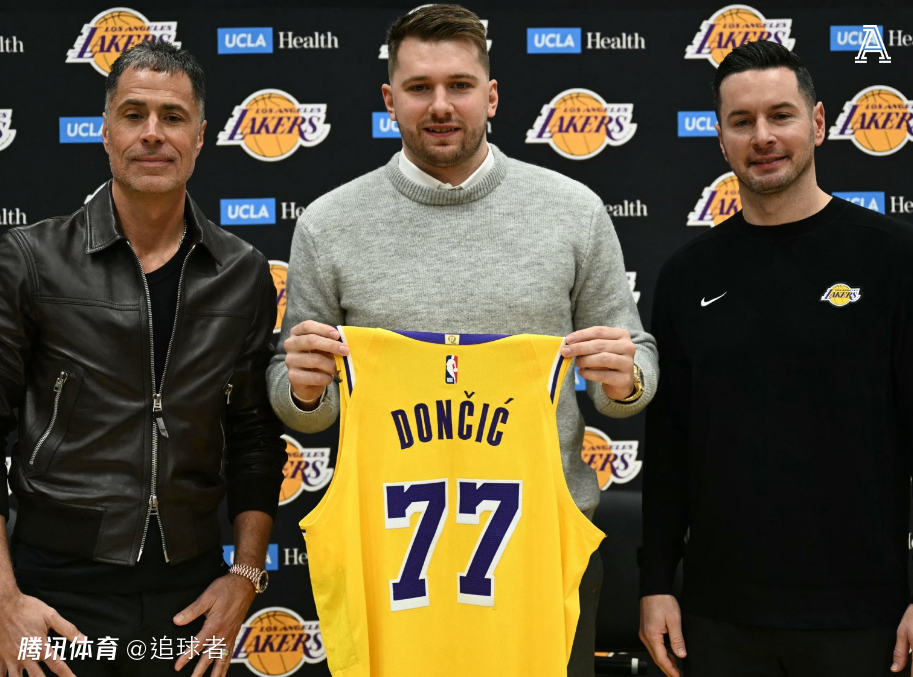 东契奇正式亮相,湖人美女老板珍妮-巴斯站在现场观看发布会,发布会之后,东契奇与芬尼-史密斯拥抱并且热聊很久,他们在湖人继续联手。