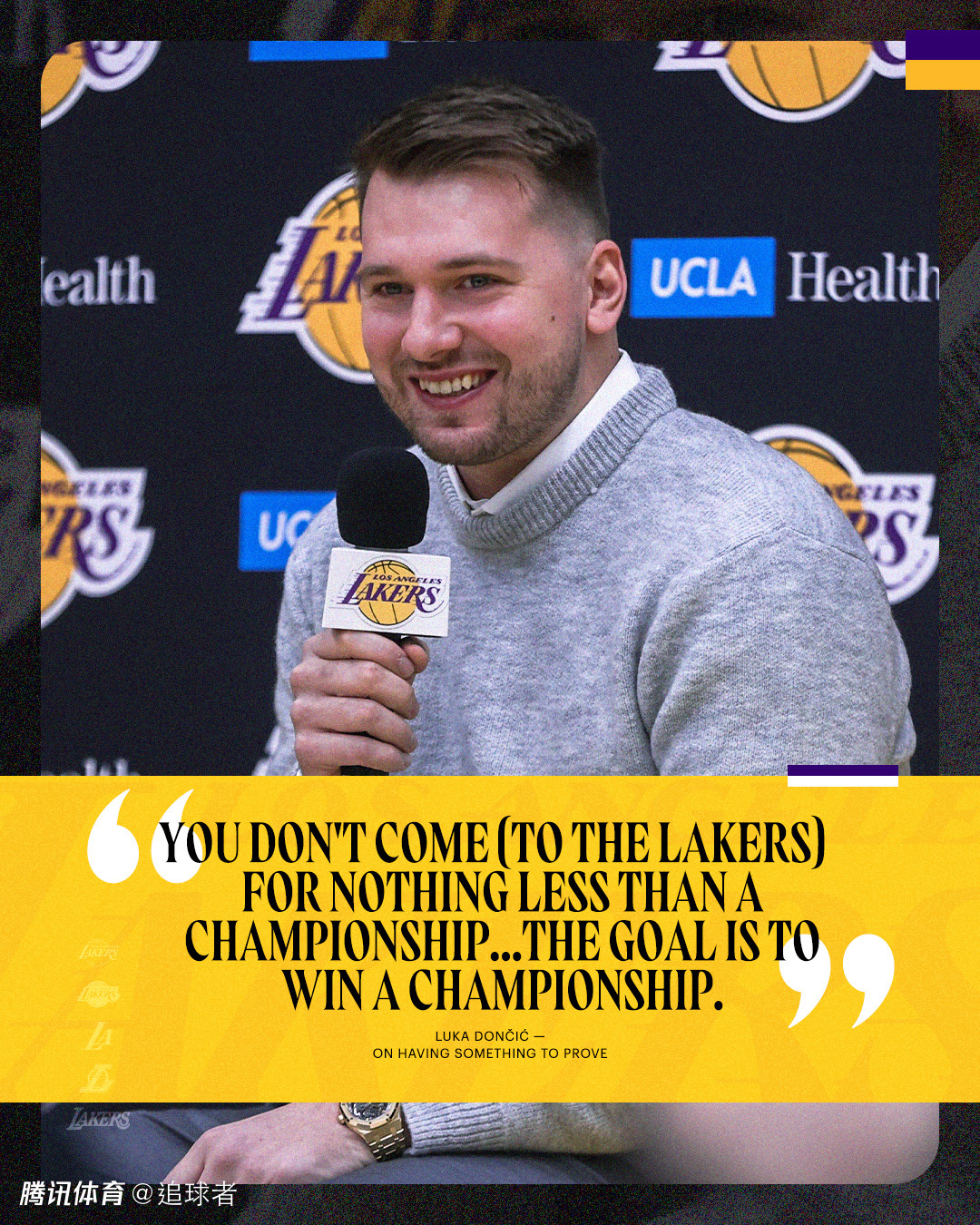 东契奇还表示:来到这里,看到所有的名字、所有的奖杯——成为如此伟大的事业的一部分,对我来说是一种巨大的激励。我非常兴奋能够开始帮助湖人争夺总冠军,目标就是赢得总冠军。
