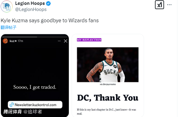 在声明中,库兹马表示:谢谢你,华盛顿,仅仅只是让你们知道,我的华盛顿生涯已经结束了,这是真的。