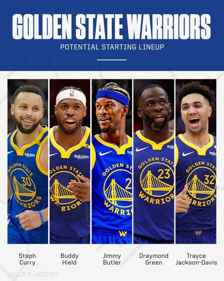 勇士队将成为巴特勒生涯效力的第5支球队,此前四支分别是:公牛队、森林狼队、76人队、热火队。美媒推测勇士队的潜在首发阵容:库里、希尔德、巴特勒、追梦格林、戴维斯。本赛季,35岁的巴特勒为热火出战了25场比赛,场均能得到17分5.2篮板4.8助攻1.1抢断,投篮命中率54%,三分命中率36.1%。