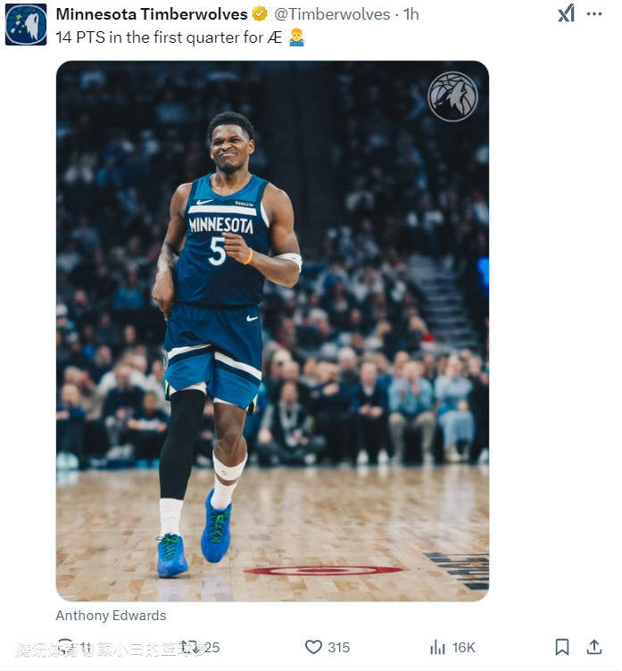 末节爱德华兹登场1分钟就连拿5分打停公牛,暴扣后怒吼再度引爆驻场,爱德华兹就是各种突破造犯规,就算没进下一个球也接着突,分差还继续拉开,比赛很快走向完结。