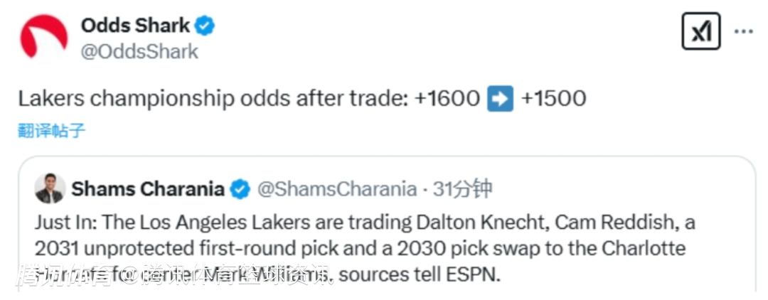 2025-02-06 14:10北京时间2月6日,据名记Shams报道,湖人把克内克特、雷迪什、2031年无保护首轮和2030年首轮互换权交易到黄蜂,换来中锋马克-威廉姆斯。随着马威的加盟,湖人的夺冠赔率也从之前的+1600提升至+1500。