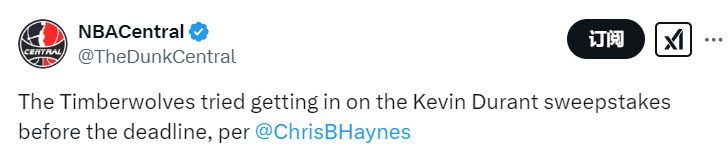 据悉,森林狼队总经理康纳利曾联系太阳队总经理詹姆斯-琼斯,询问交易杜兰特的可能性。但森林狼最终未能完成交易,他们也是截止日期前四支没有完成任何交易的球队之一。