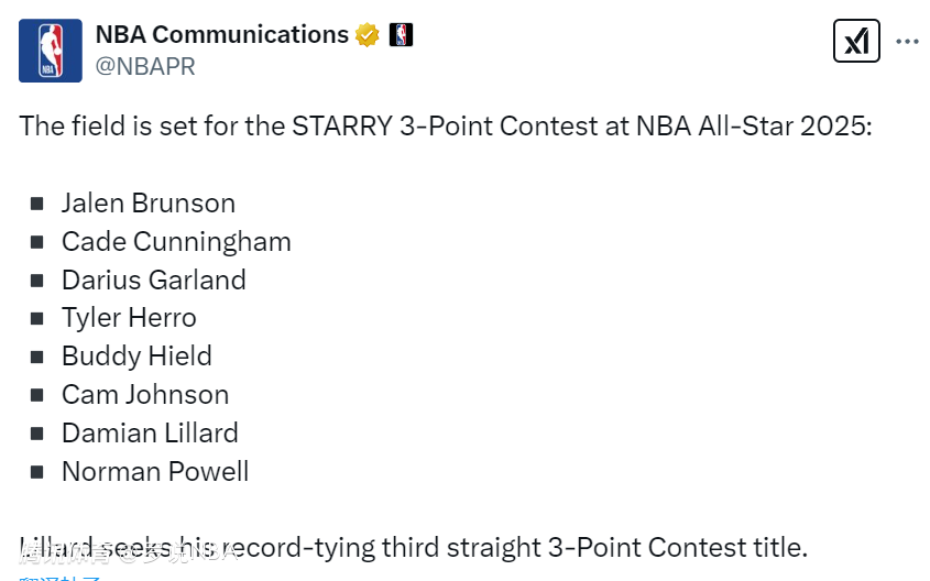 NBA官宣全明星三分大赛名单:利拉德冲击三连冠 希尔德鲍威尔在列