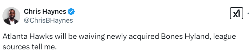 2025-02-08 07:20北京时间2月8日,根据NBA记者Chris Haynes报道,老鹰队已经裁掉了海兰德。