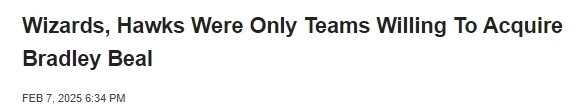2025-02-08 08:30北京时间2月8日,根据NBA记者Ramona Shelburne和Brian Windhorst联合报道,在太阳队尝试交易比尔换来巴特勒的相关谈判中,奇才队和老鹰队是唯二愿意接手比尔的球队。